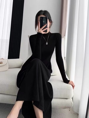 黑色针织连衣裙女2025年秋冬新款收腰显瘦气质配大衣的内搭打底裙