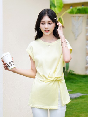 ATAR时尚落肩T恤夏季新款韩版设计感打结百搭洋气短袖宽松显瘦T恤