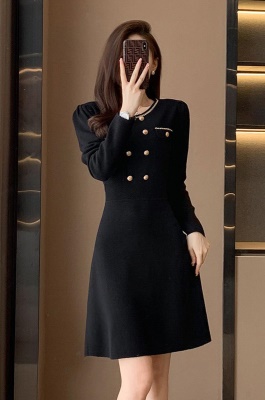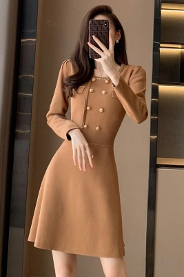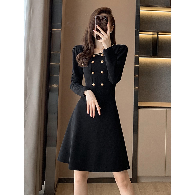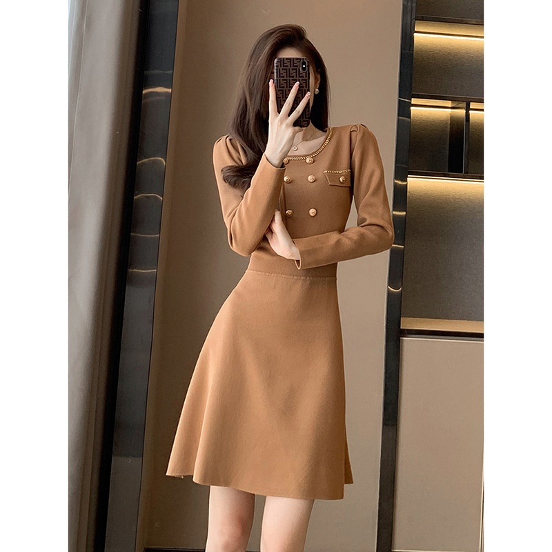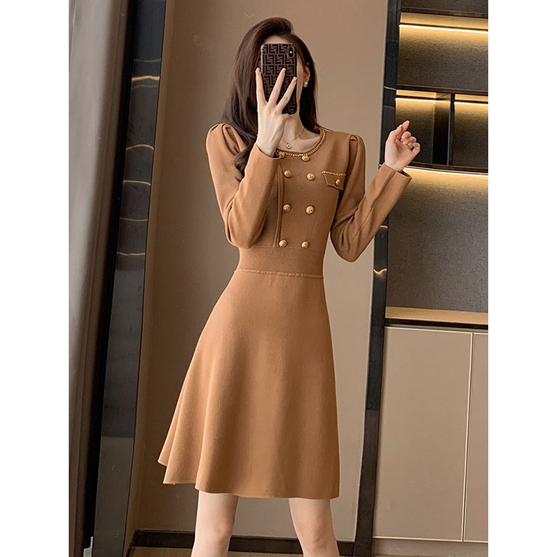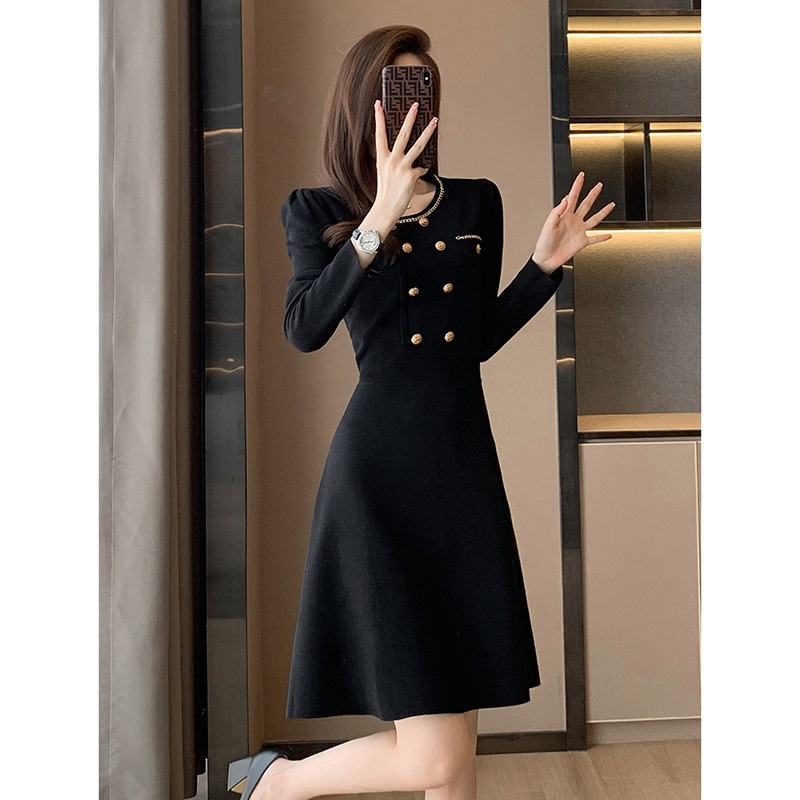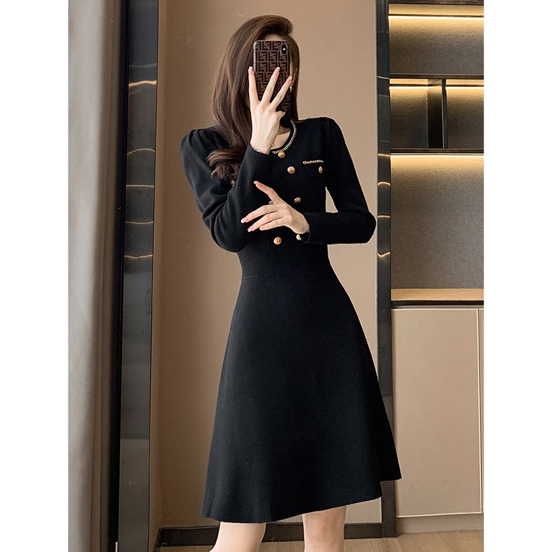 商品名称:秋冬新款轻奢名媛小香风连衣裙女中长款显瘦打底针织配大衣的内搭