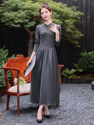 新中式国风长袖连衣裙女2023秋天新款修身显身材高贵洋气漂亮长裙