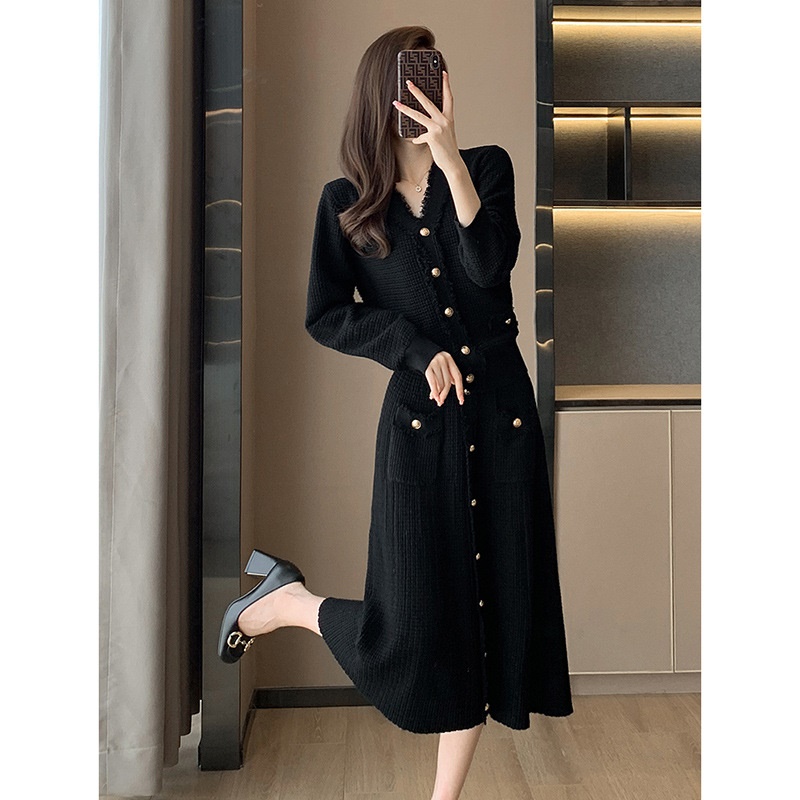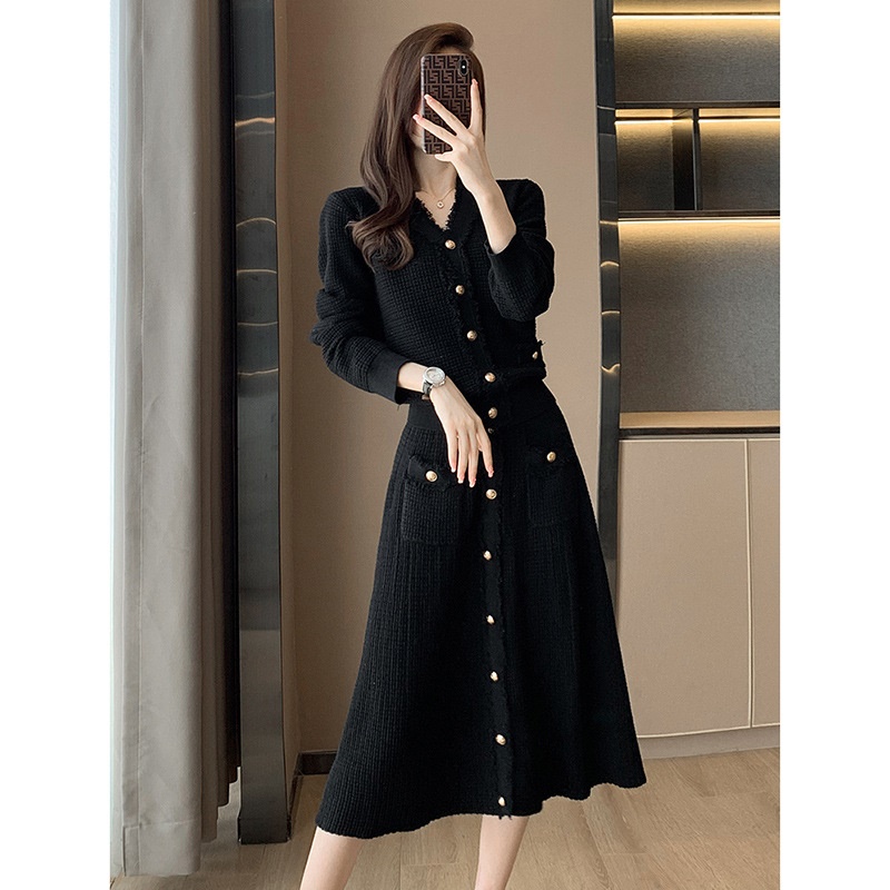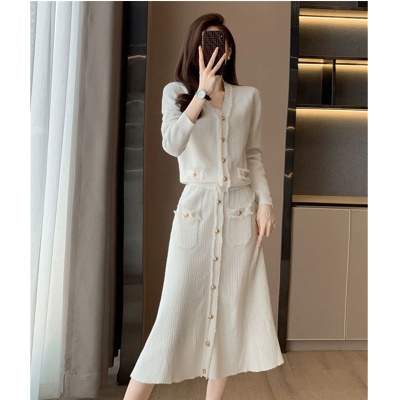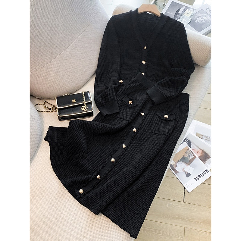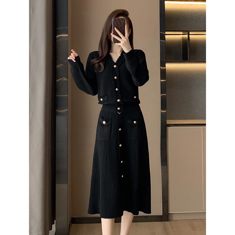 商品名称:小香风套装女2025秋冬季气质名媛长袖针织开衫中长款半身裙两件套