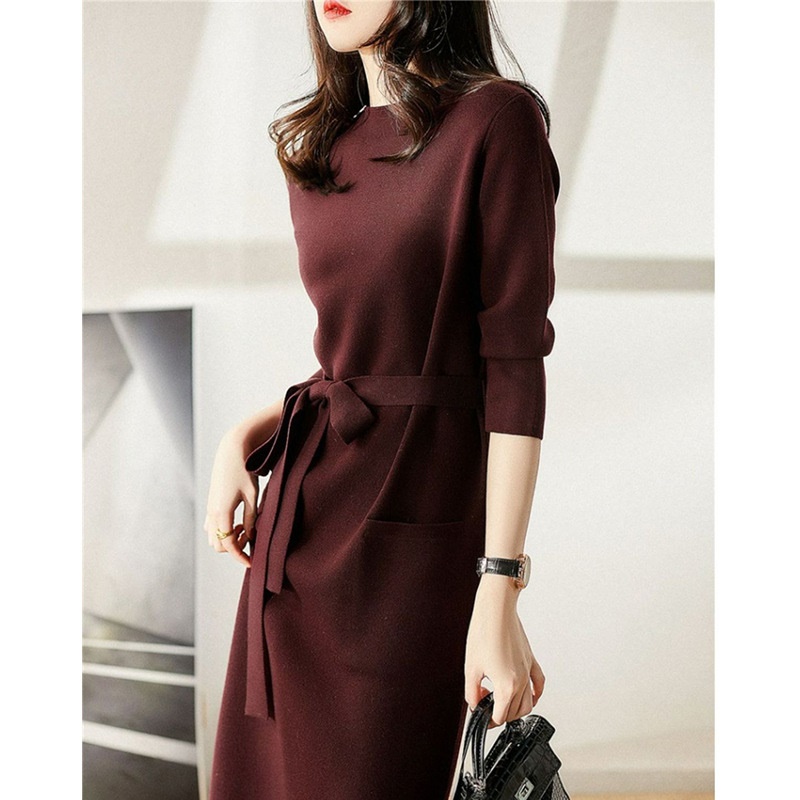 2025年秋冬新款气质御姐轻熟风高级感针织连衣裙收腰显瘦毛衣长裙