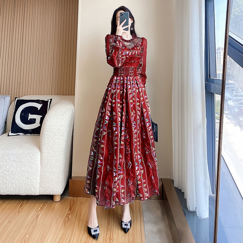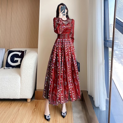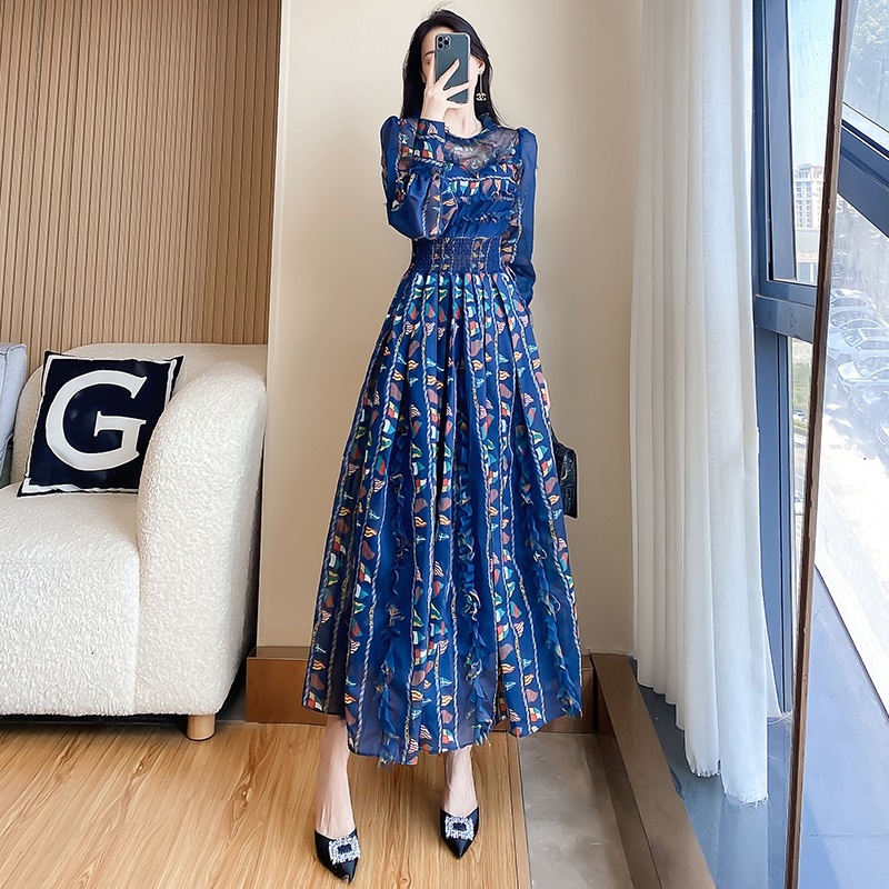 春秋新款2025春季法式碎花连衣裙女长袖裙子春装气质名媛雪纺长裙