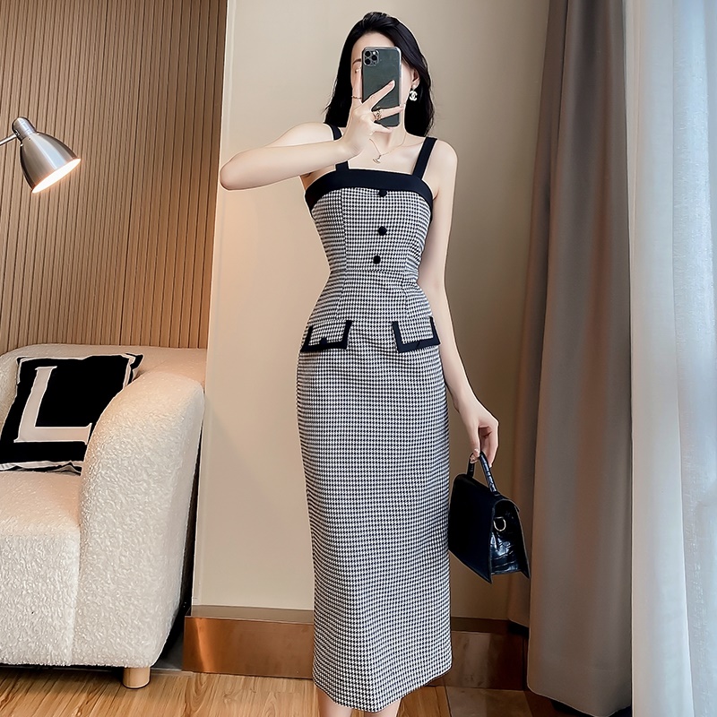 商品名称:小香风洋装两件套装小外套秋冬新款职业高级感女装格子吊带连衣裙