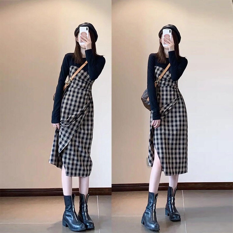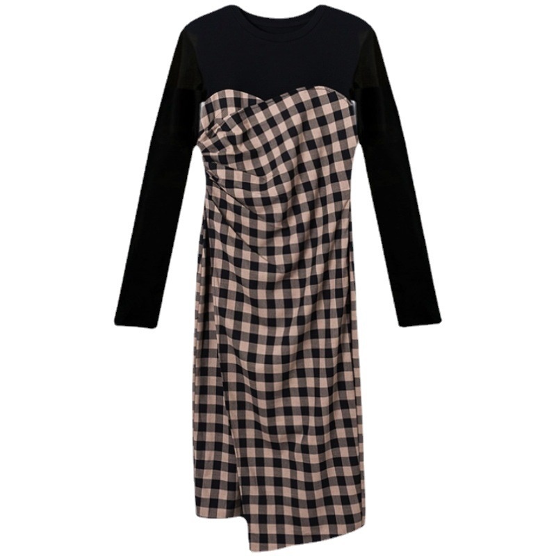 2025早春装新款复古显瘦气质修身法式高级感长袖格子连衣裙女春季