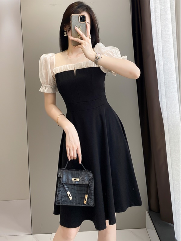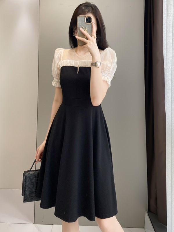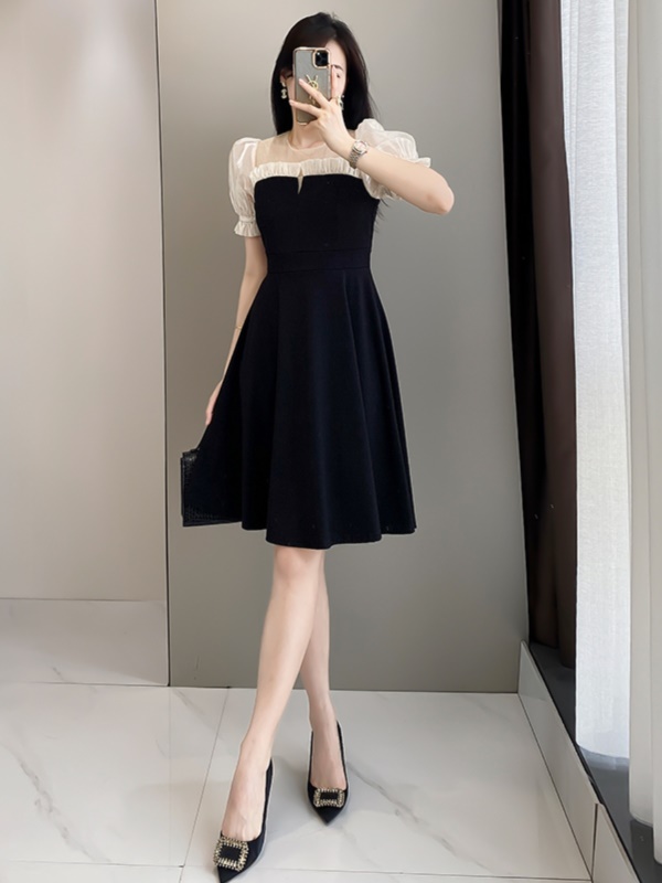 黑色连衣裙小个子女夏高级感气质修身显瘦时尚高端精致宴会礼服裙