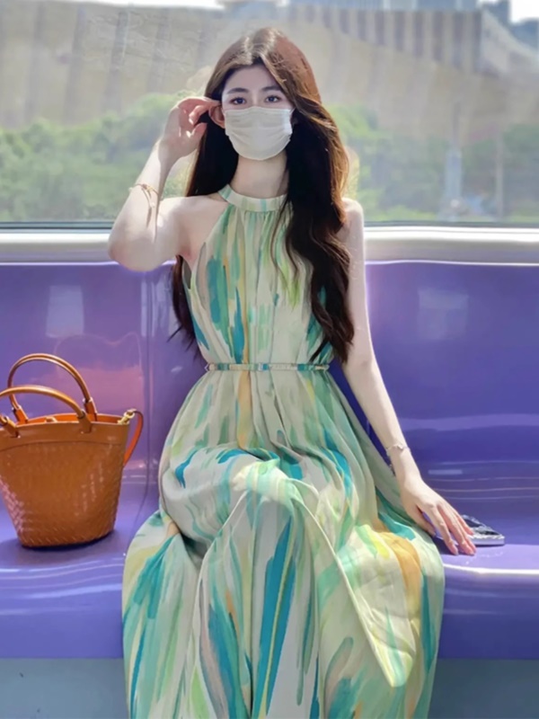 波西米亚雪纺连衣裙女夏2025夏季新款海边度假沙滩高端吊带长裙子