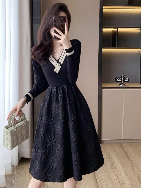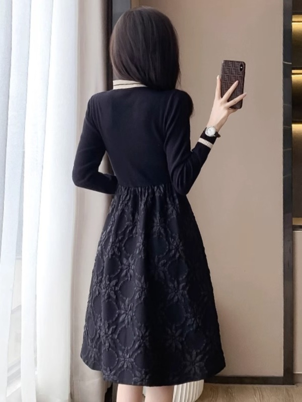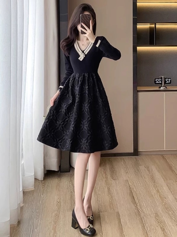 简约OL通勤正式场合气质连衣裙女秋冬季小个子收腰显瘦百搭小黑裙