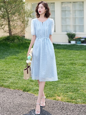 法式波点天丝连衣裙女2025夏季新气质收腰款流行爆款巨好看中长裙