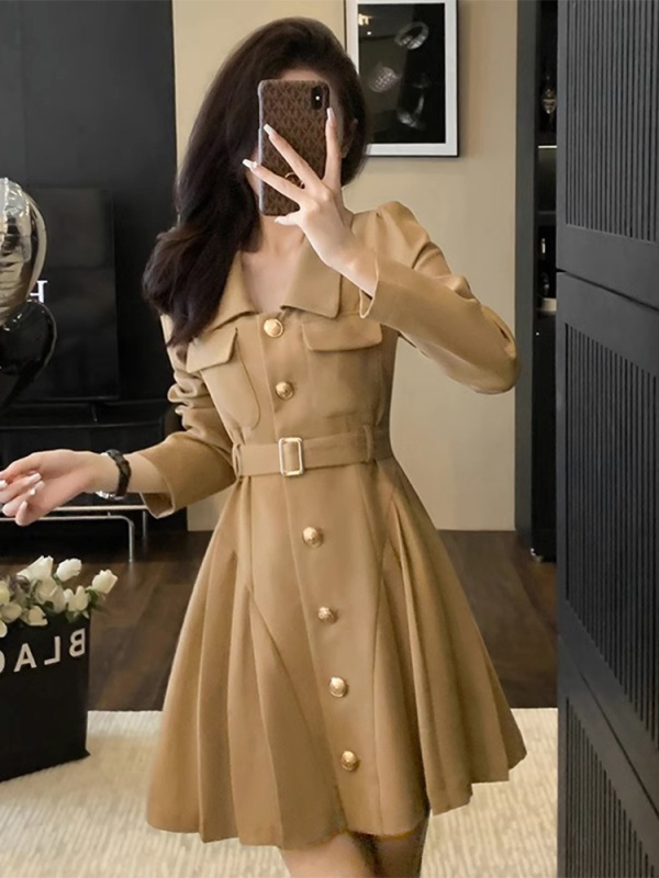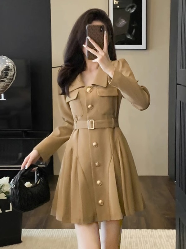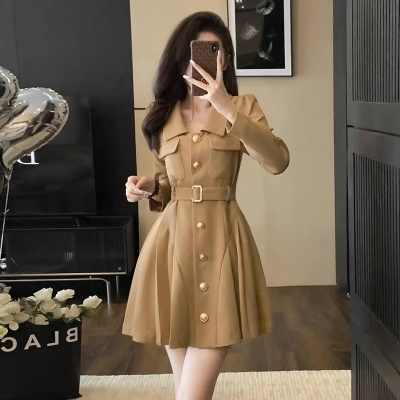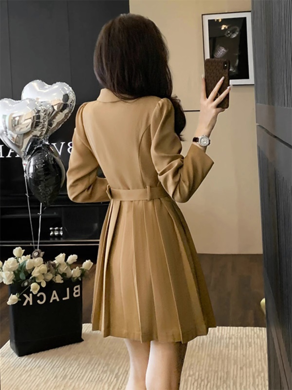 西装连衣裙小个子2025秋季新款法式复古高级感气质收腰显瘦百褶裙