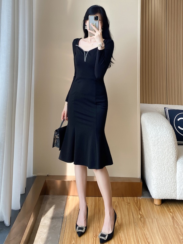 秋季新款女装高级感礼服高端法式修身气质包臀赫本黑色鱼尾连衣裙