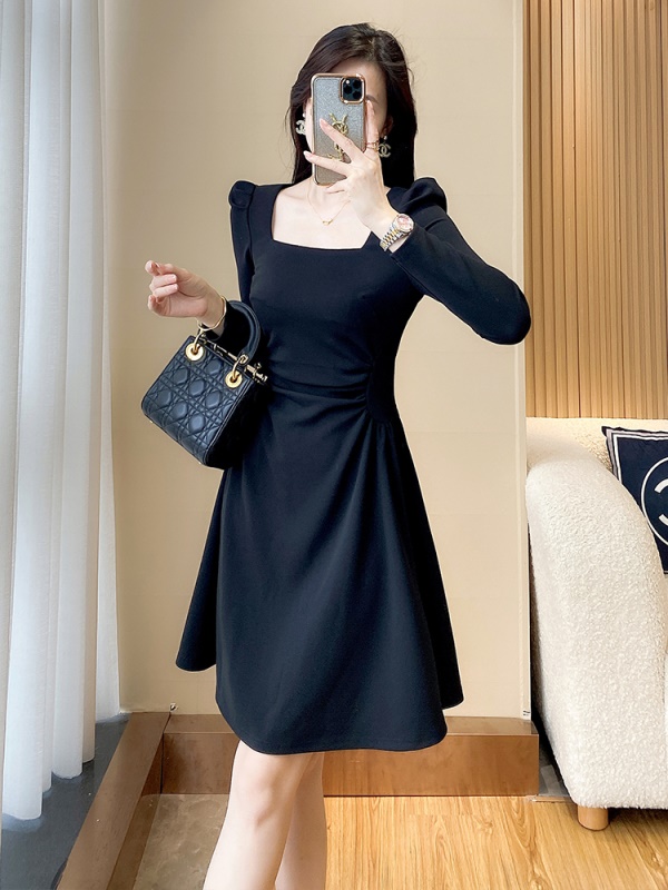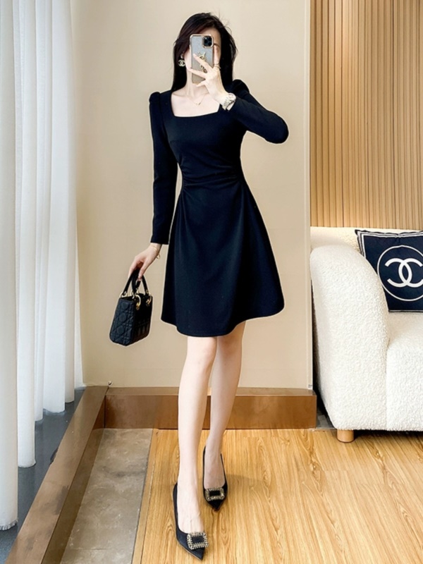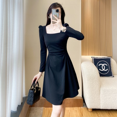 商品名称:轻奢气质黑色收腰显瘦连衣裙小个子2025秋季新款女装赫本风小黑裙