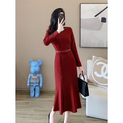 高级感宴会礼服裙轻奢小众鱼尾红色订婚连衣裙秋装结婚回门敬酒服