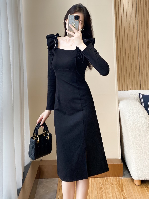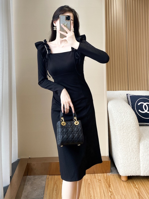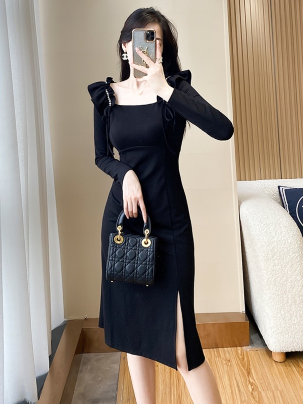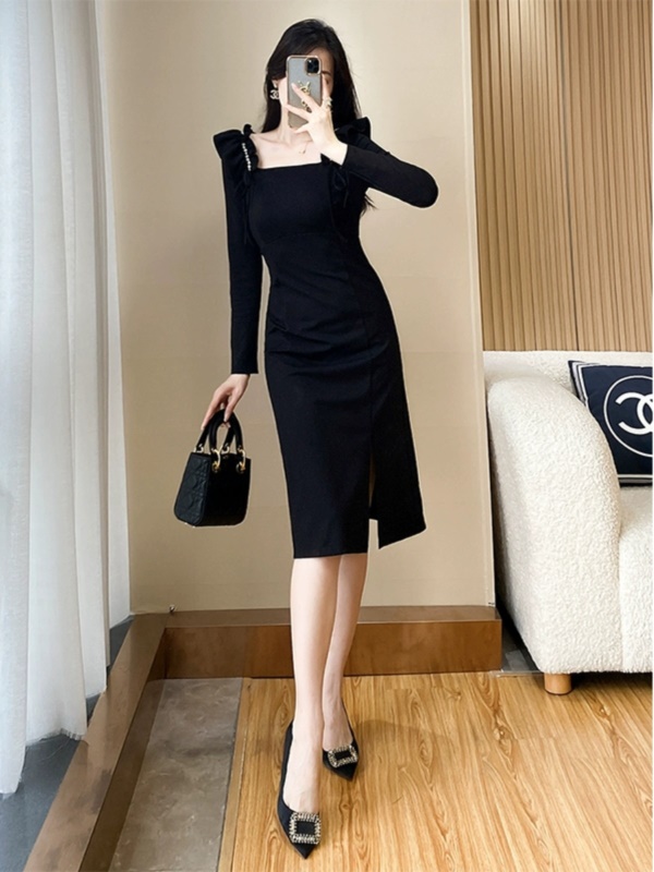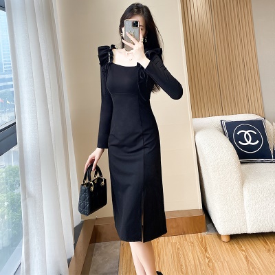 商品名称:黑色高级感开叉连衣裙女秋季新款气质修身包臀晚礼服赫本风小黑裙