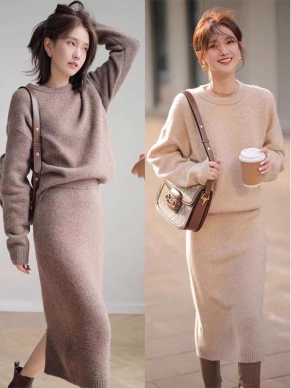 商品名称:小香风套装裙2025新款秋冬针织上衣毛衣半身裙子打底配大衣连衣裙
