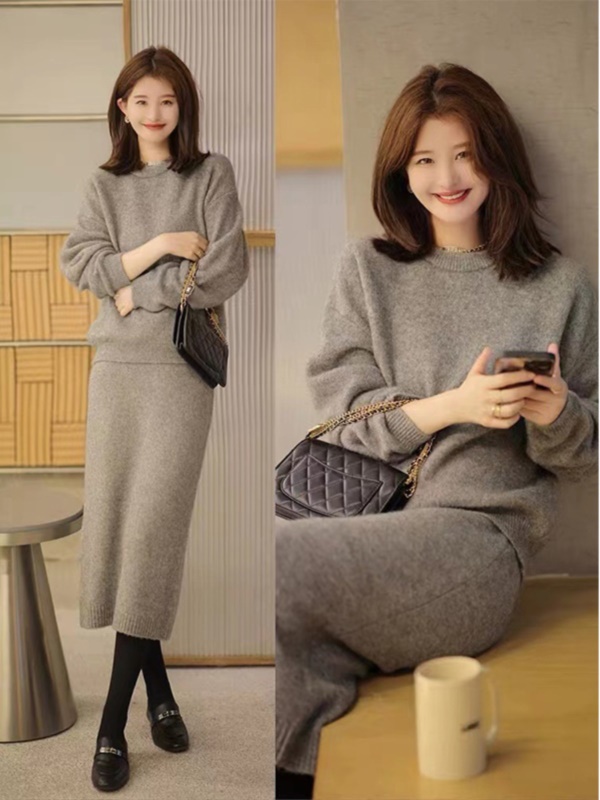 [颜色分类:灰色上衣+半身裙 尺码:XL]