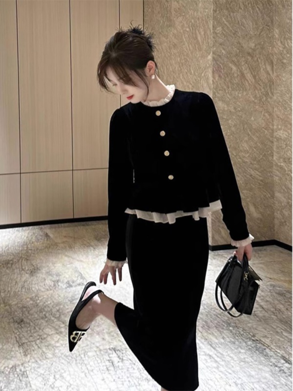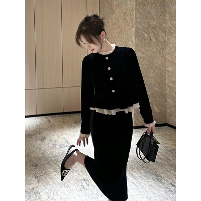 商品名称:秋冬季女装2025新款黑色金丝绒连衣裙赫本风高定高端法式礼服长裙