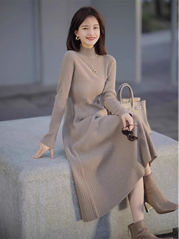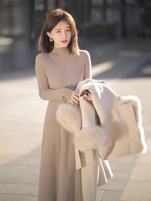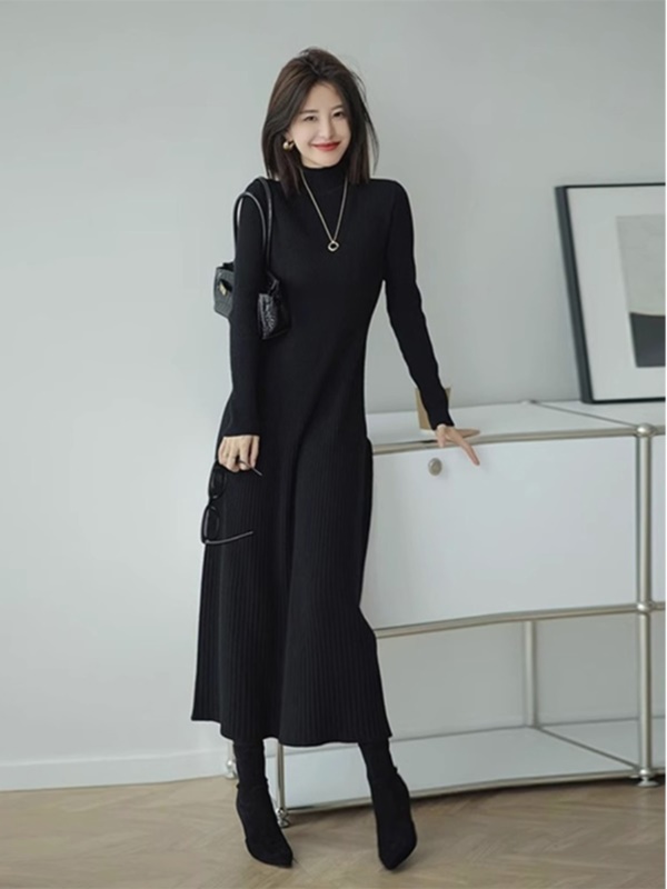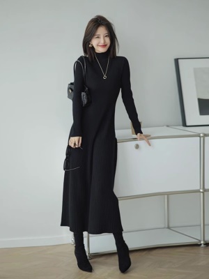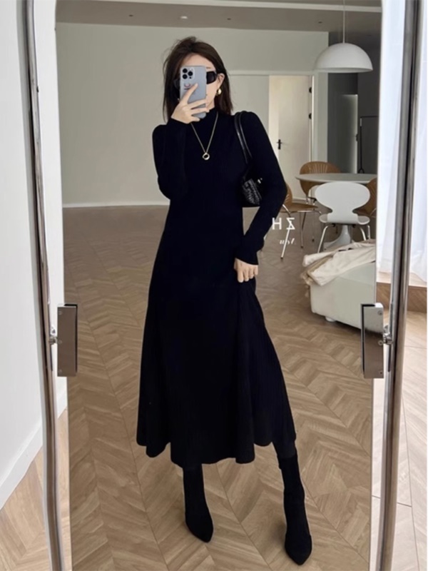 法式配大衣长款毛衣裙女秋冬新款高级感半高领内搭打底针织连衣裙