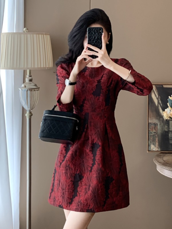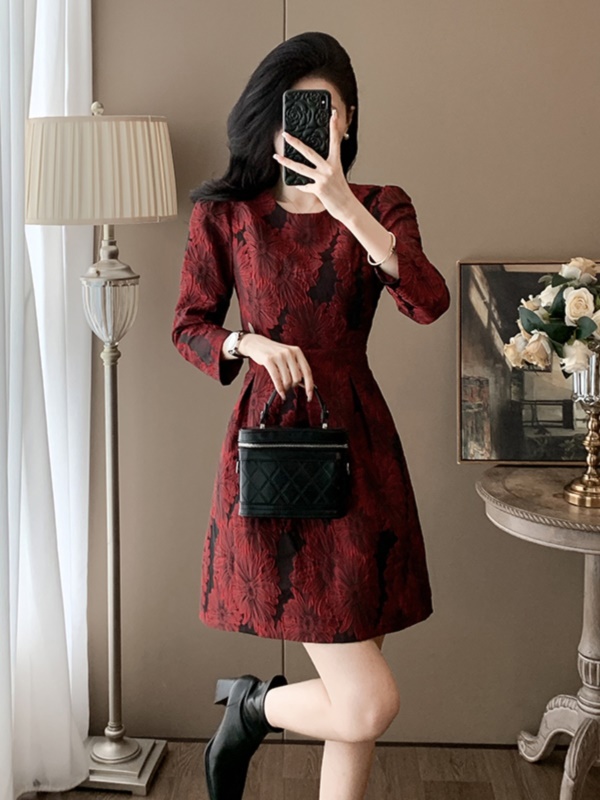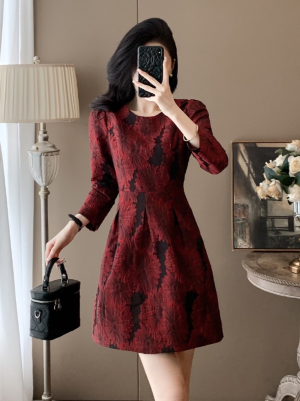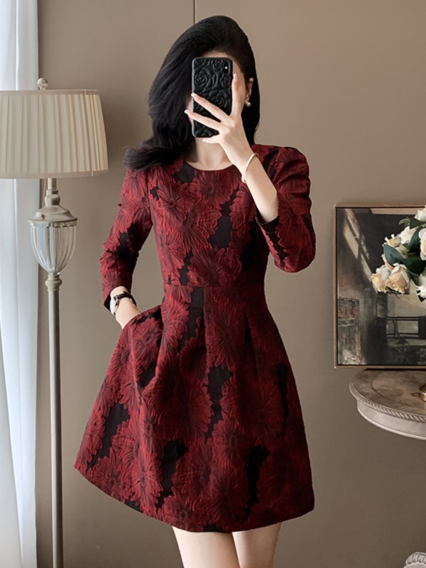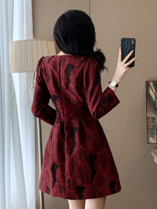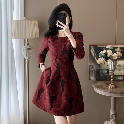 秋冬新款酒红色连衣裙短款时髦小洋装小个子高级感宴会礼服裙轻奢