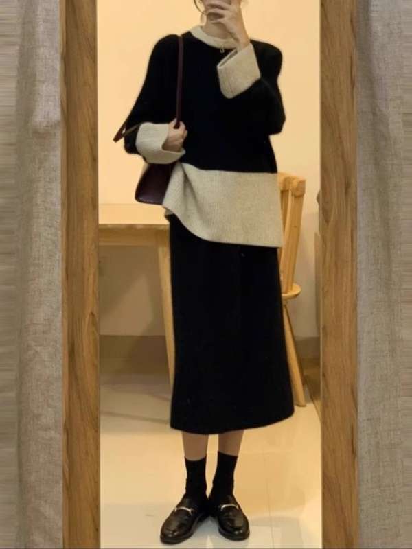 商品名称:2025秋冬新款小香风针织套装裙女两件套慵懒风高级感红色毛衣裙子