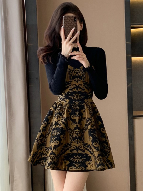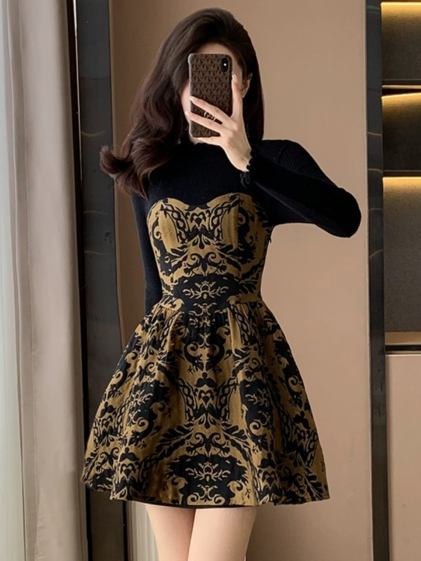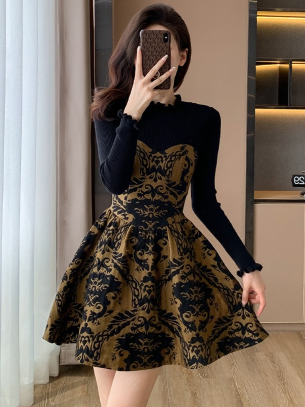 小香风针织连衣裙女冬季晚礼服修身显瘦高级感提花蓬蓬裙子小个子