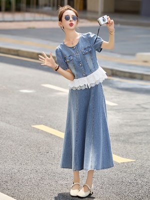 [限时折扣] 设计感钩花蕾丝套装连衣裙女2025夏季新款两件套裙子