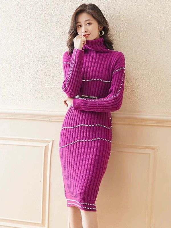 针织收腰打底毛衣连衣裙子女秋冬季新款半高领配大衣的内搭中长款