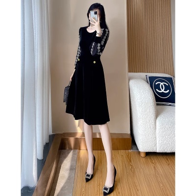 商品名称:冬天法式黑色连衣裙高级感2025秋季新款女气质正式场合丝绒小黑裙