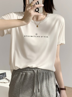 独特上衣超好看大码冰丝短袖t恤女夏季新款休闲字母时尚别致半袖