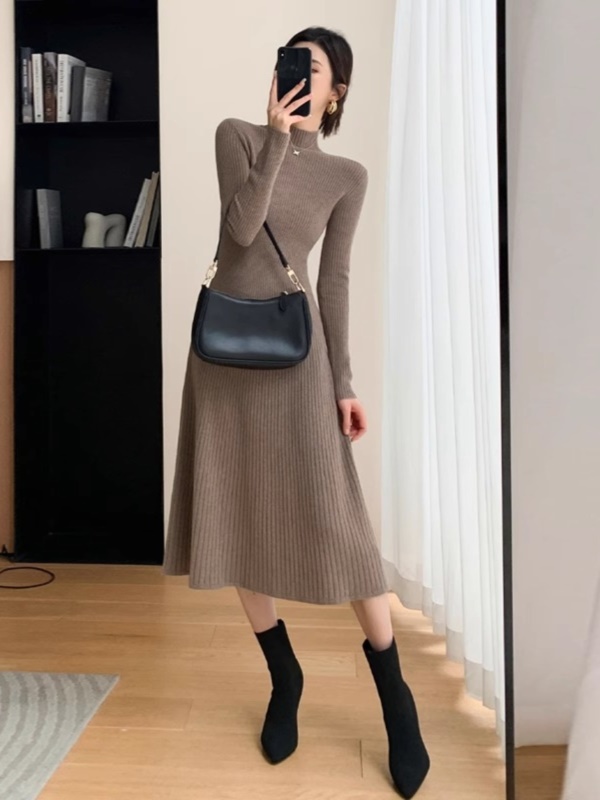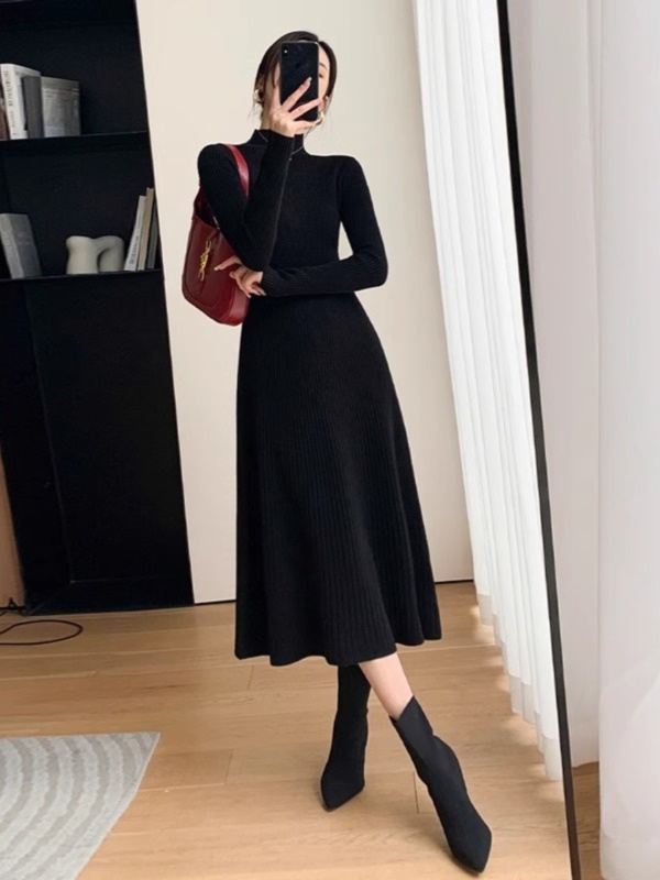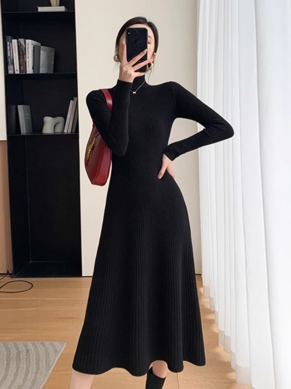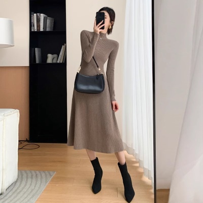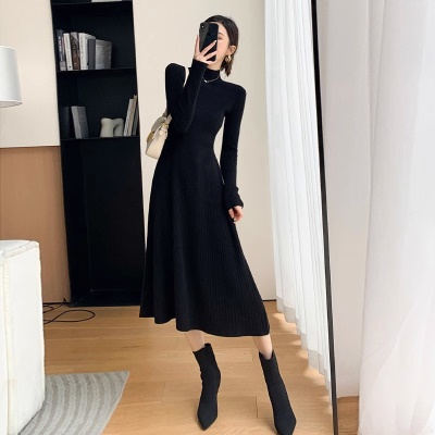 半高领毛衣裙收腰显瘦气质打底针织连衣裙女秋冬配大衣内搭中长款