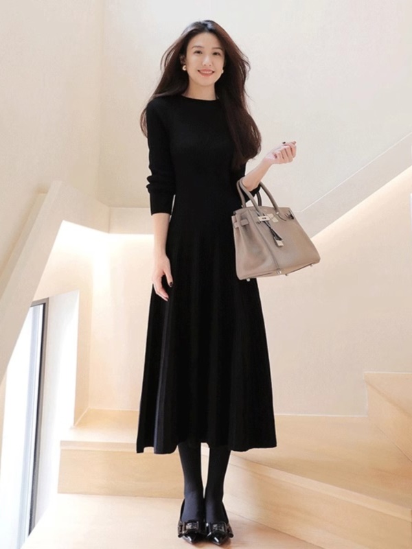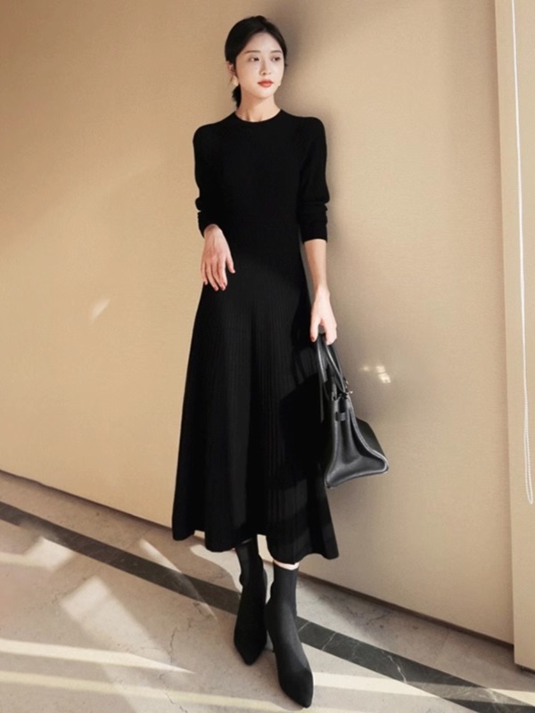 商品名称:2025新款配大衣毛衣内搭打底针织长袖连衣裙女秋冬修身显瘦中长款
