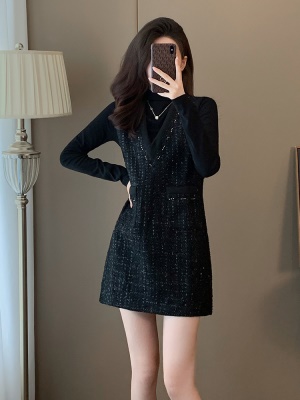 小香风背心连衣裙女2025秋冬新款配大衣马甲毛呢内搭套装裙小个子