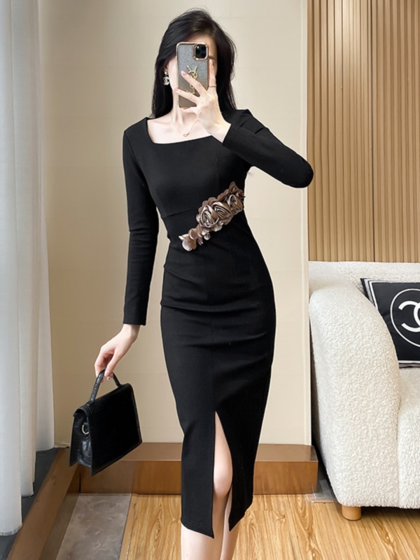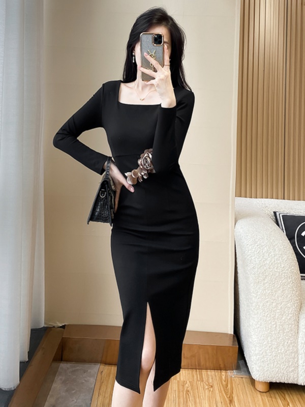 秋冬包臀连衣裙新款名媛气质御姐风设计感显瘦女方领晚礼服裙高端