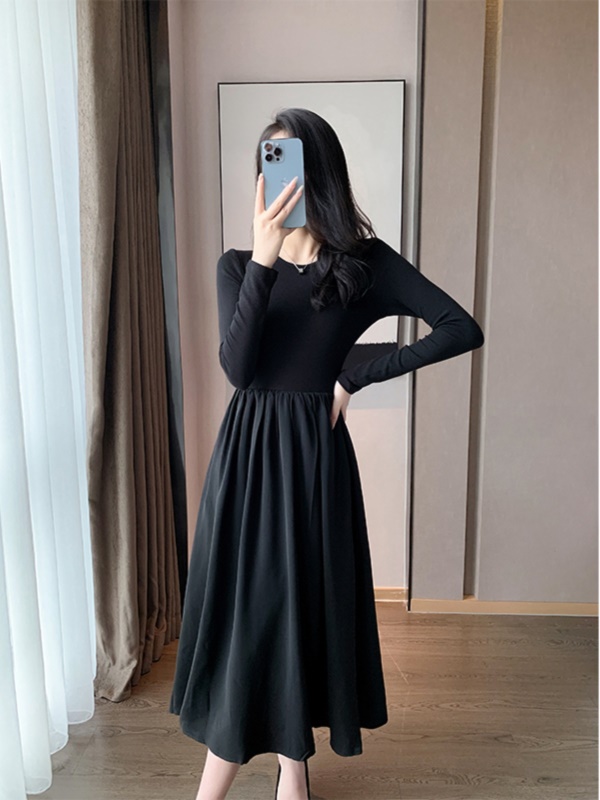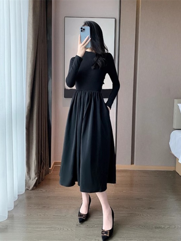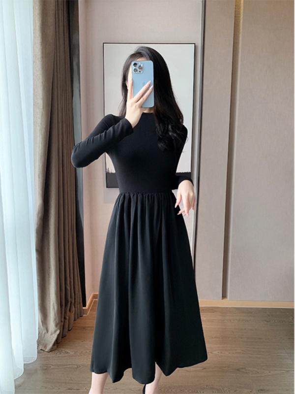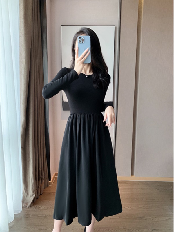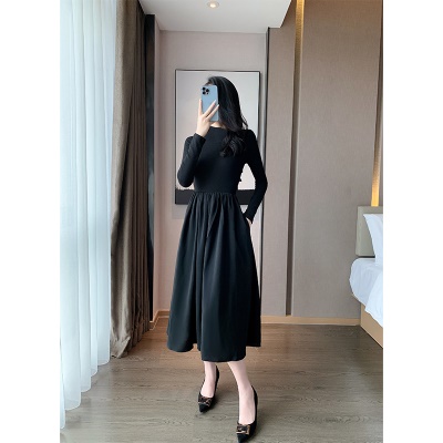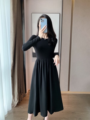 商品名称:黑色针织连衣裙女2025年秋冬新款收腰显瘦气质打底裙配大衣的内搭