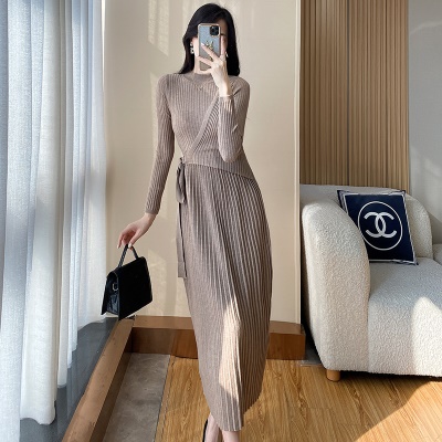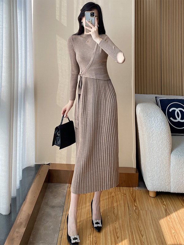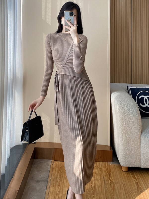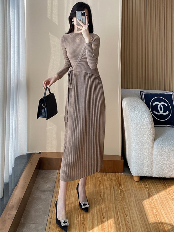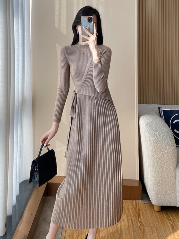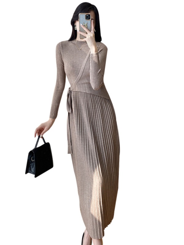 商品名称:秋冬季新款配大衣内搭针织连衣裙收腰显瘦中长款冬天打底毛衣裙女