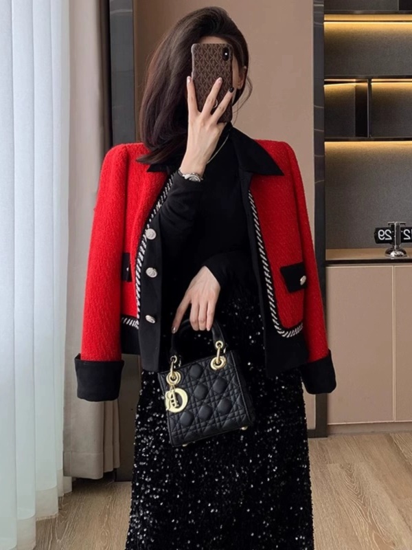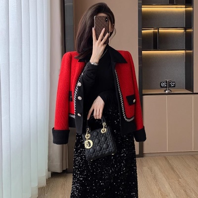 商品名称:小香风红色毛呢外套女秋冬高端羽绒服加厚高级感喜庆过年短款上衣