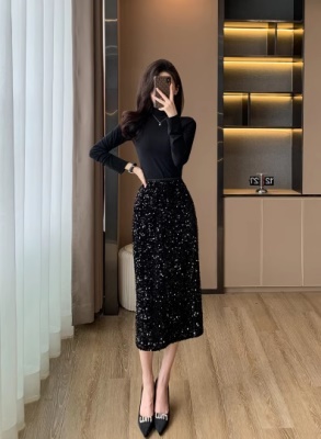 半高领毛衣裙收腰显瘦气质打底针织连衣裙女秋冬配大衣内搭中长款