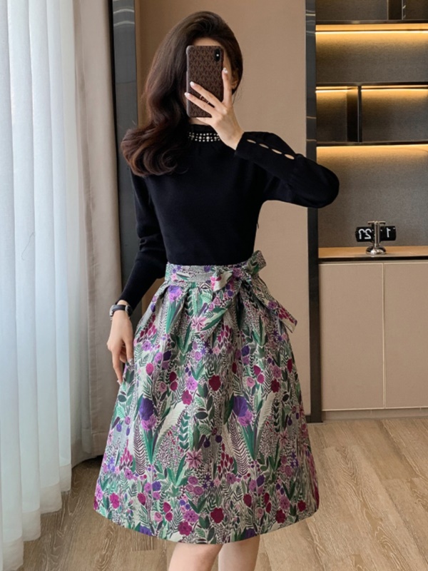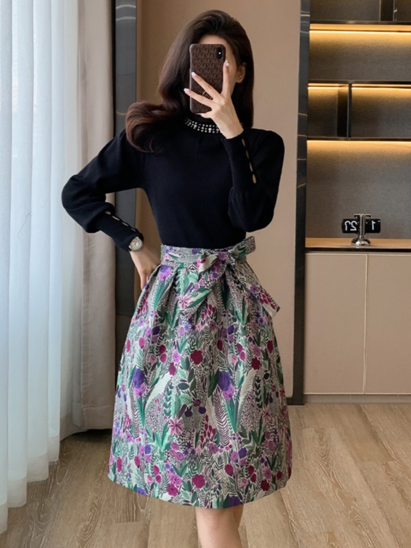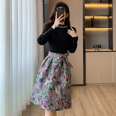 气质秋季新款毛衣针织上衣显瘦半身裙套装两件套高级感穿搭一整套