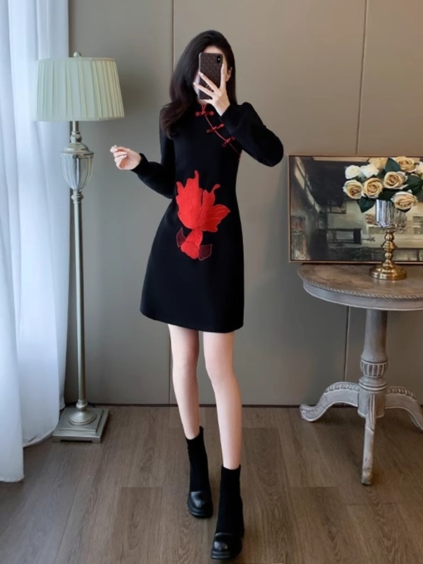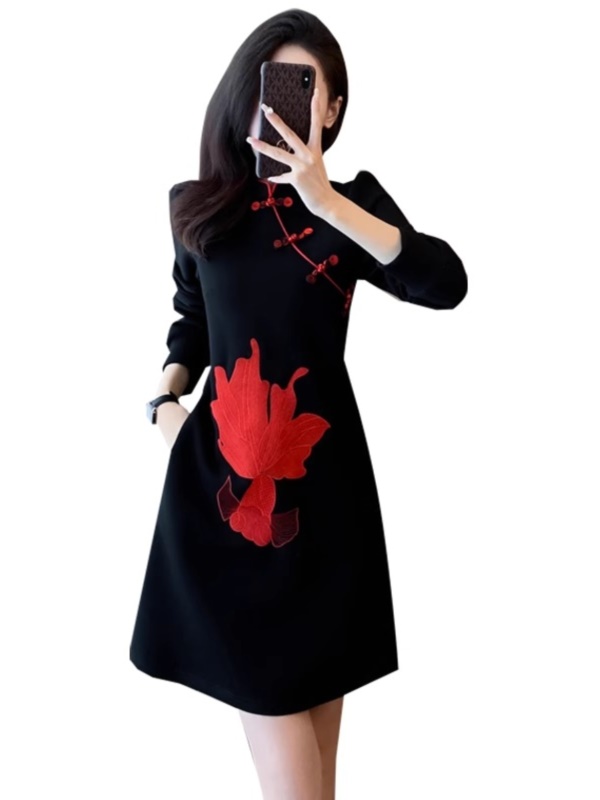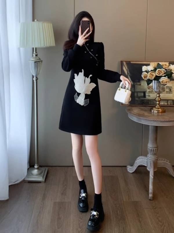 新中式国风女装高端旗袍连衣裙女秋冬高级感年会小礼服裙气质轻奢