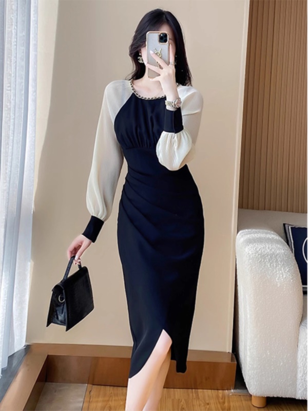 黑色职业连衣裙女2025年秋季新款高级感修身包臀气质通勤长袖裙子