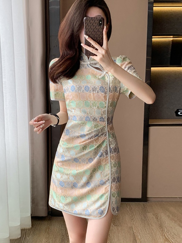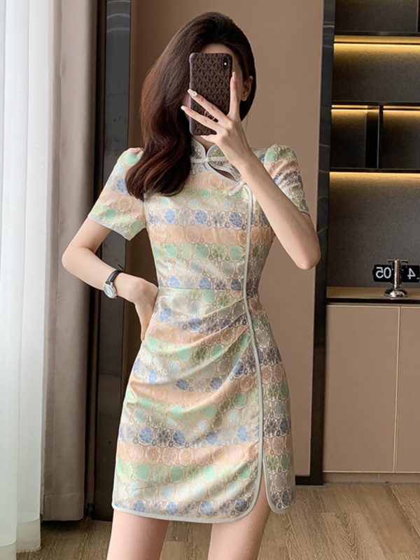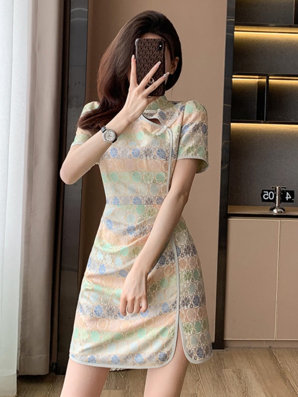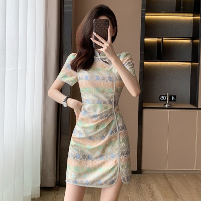 国潮风旗袍改良连衣裙女夏季小个子年轻款少女新中式国风女装短裙