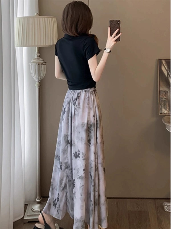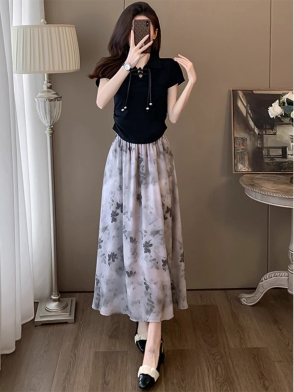 黑色 上衣+半身裙两件套
