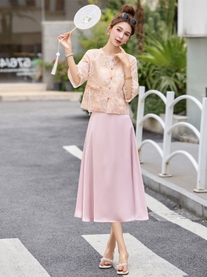 新中式国风年轻洋气套装女夏季2025新款高端刺绣改良旗袍裙两件套