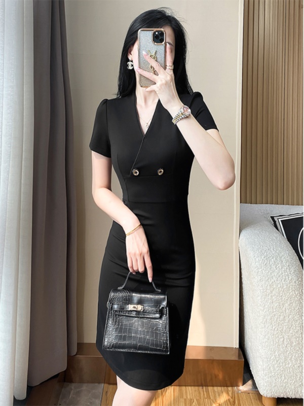 商品名称:裙子女夏天黑色法式显瘦OL包臀裙高端职业气质连衣裙2025新款夏