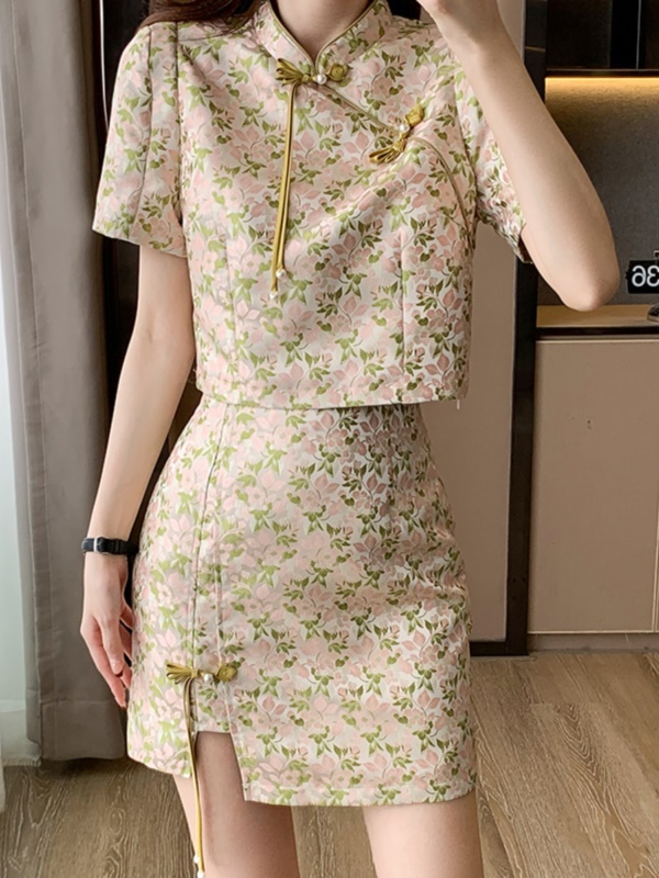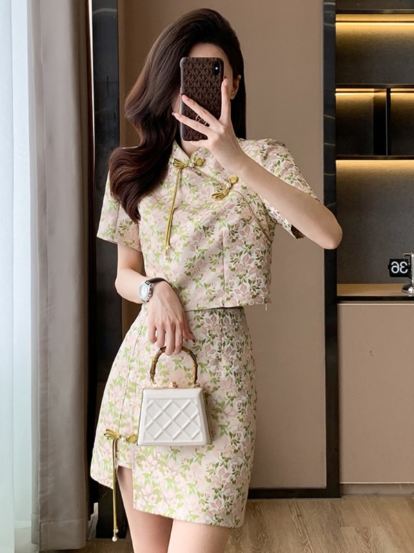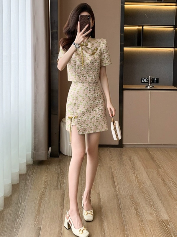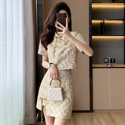 商品名称:新中式国风改良旗袍套装女2025夏季新款高端气质短裙两件套小个子