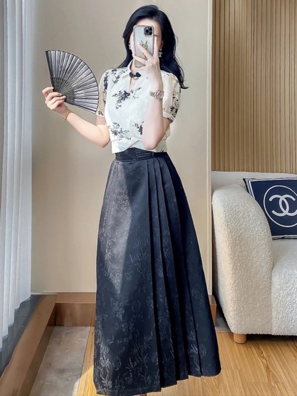 商品名称:气质马面裙汉服套装女夏高级感2025夏季新款中式国风半身裙两件套