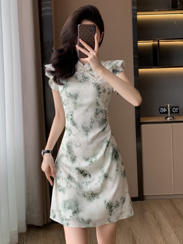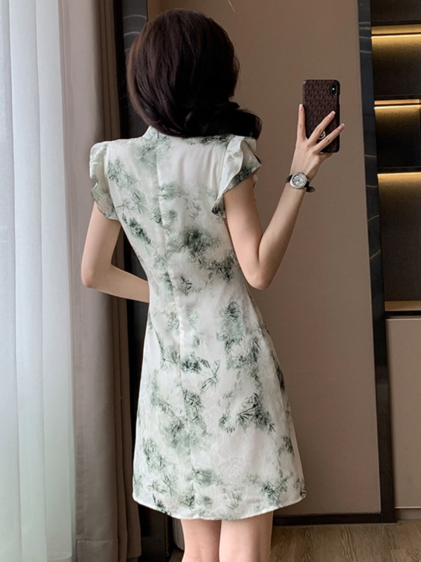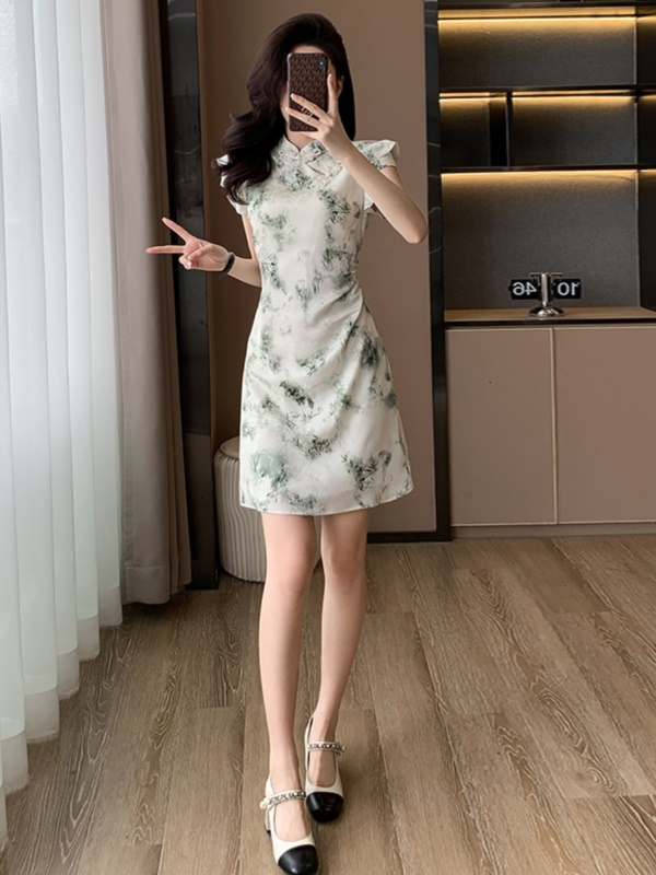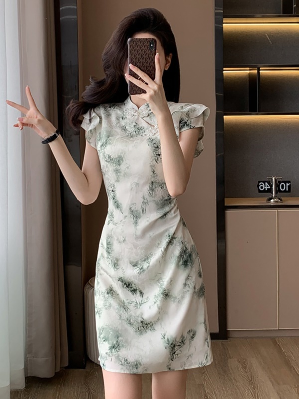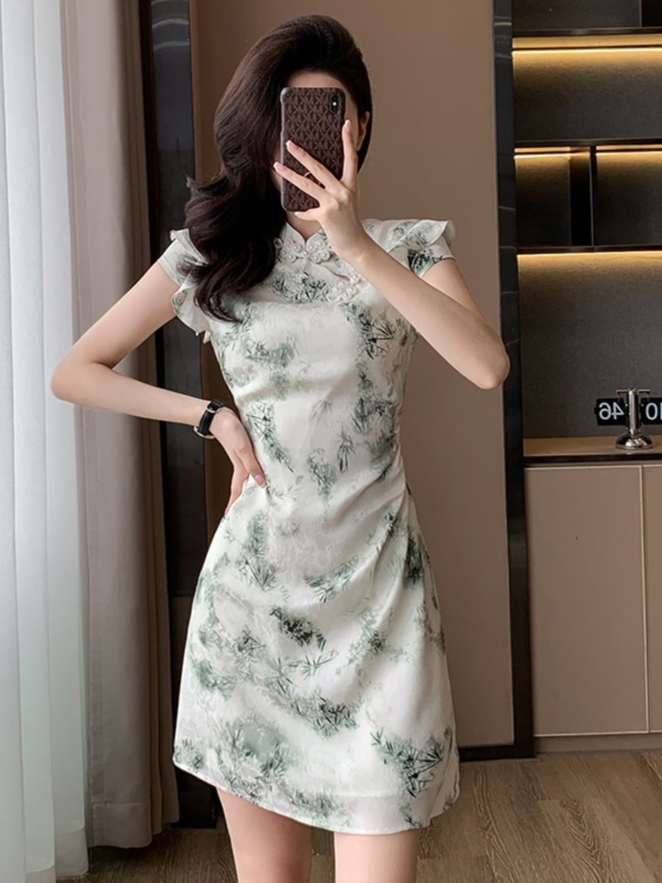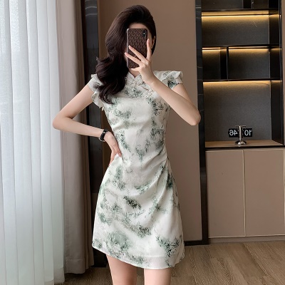 新中式水墨印花国风连衣裙女夏季气质修身收腰显瘦a字改良旗袍裙