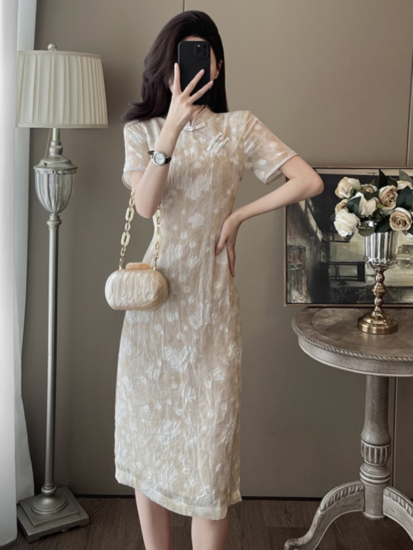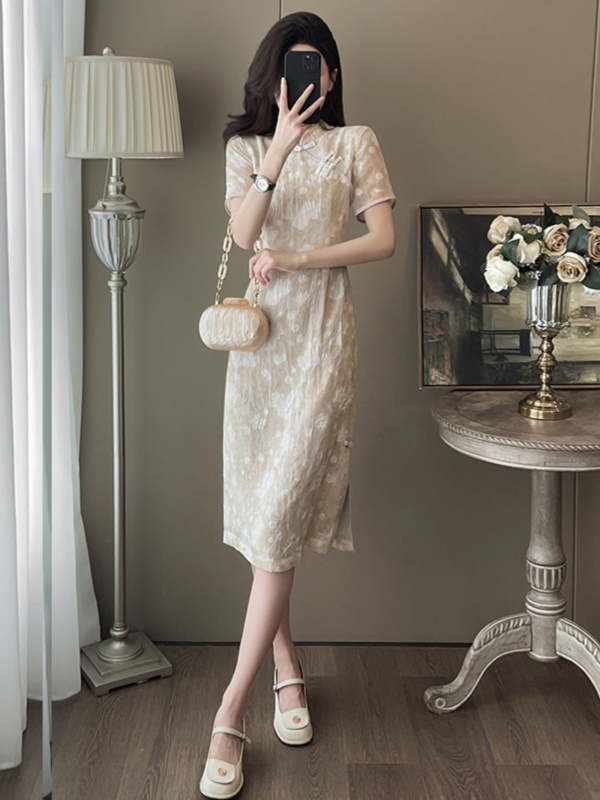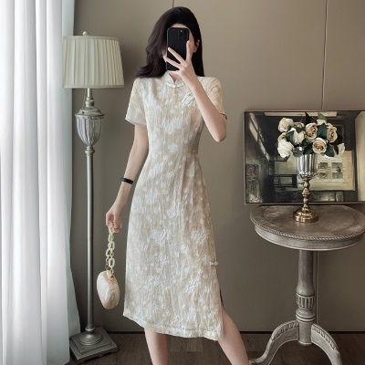 新中式国风连衣裙气质显瘦高级感礼服裙子女白色旗袍夏季2025新款