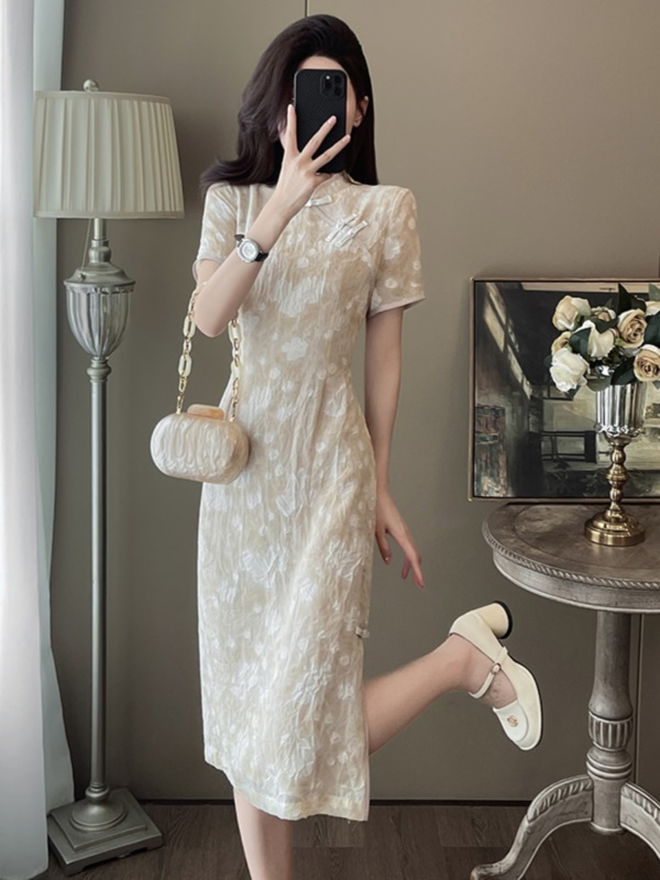 早秋新款国风女装连衣裙小个子高级感新中式气质收腰显瘦旗袍短裙