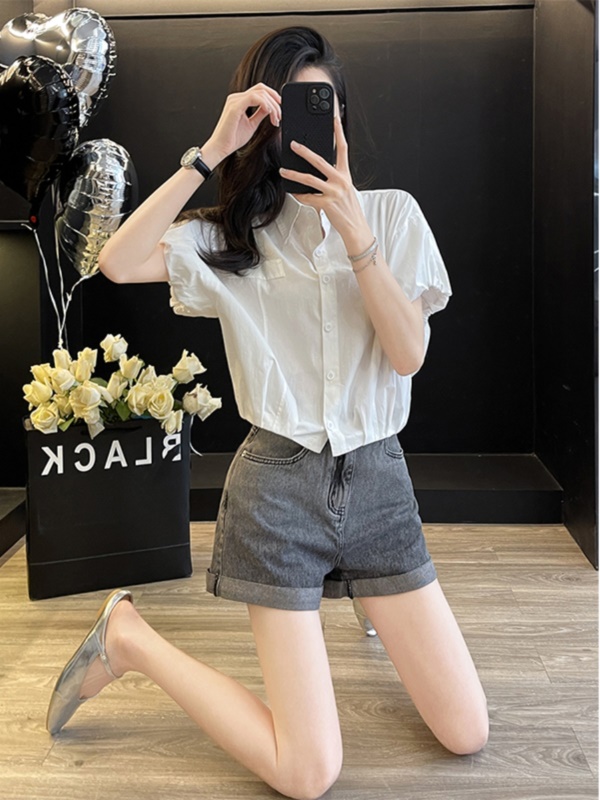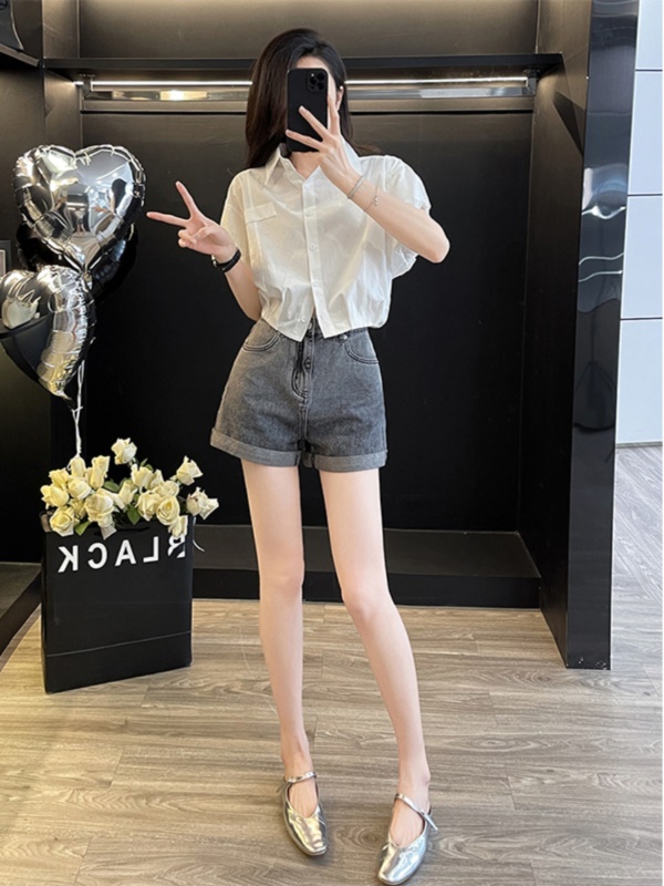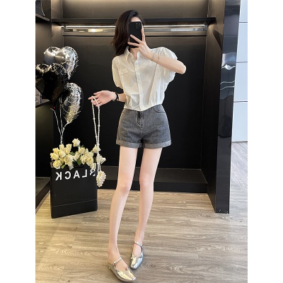 商品名称:2025夏装搭配一整套白色职业短袖衬衫牛仔短裤休闲时尚两件套女装